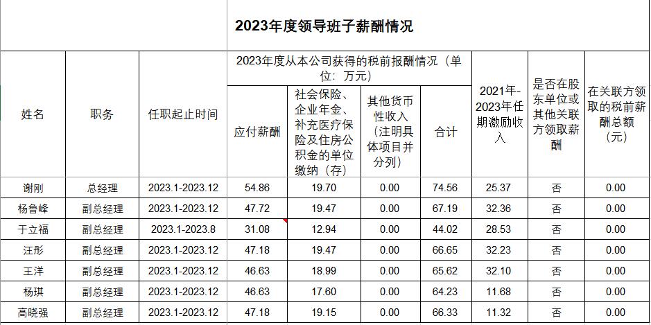 2023年度領導班子薪酬情況