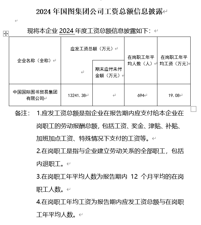 2024年國(guó)圖集團(tuán)公司企業(yè)工資總額信息披露